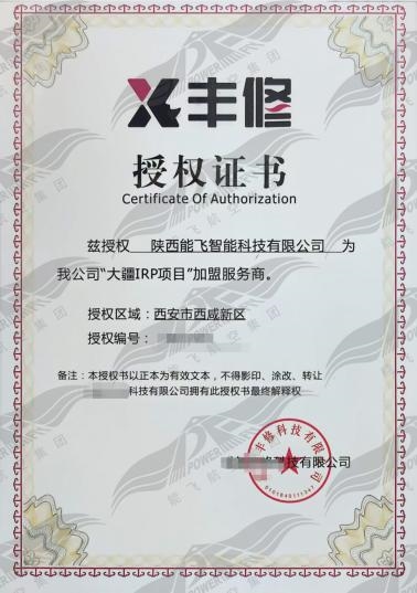 ▲ 丰修“大疆IRP项目”加盟服务商授权证书